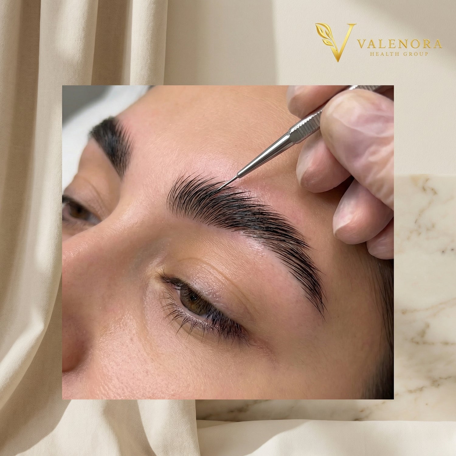 Brow lamination is a treatment that reshapes and sets the brow hairs using specialized solutions to achieve a fuller and more structured look.